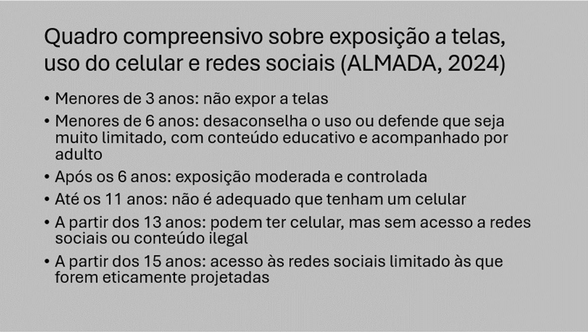 4) A exposição excessiva a telas e o uso de redes sociais representam fatores de risco adicionais quando há vulnerabilidade pré-existente na criança ou adolescente, como depressão ou ansiedade.
