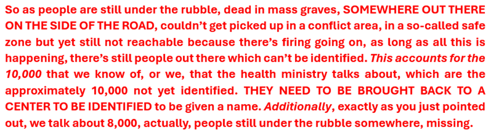 🧵CRITICAL UPDATE ON GAZA FATALITIES: 10,000 unidentified fatalities UN/Hamas claims are confirmed dead are not bodies collected & held, merely awaiting identification. They are reported dead but UN admits bodies are not in anyone’s possession and their location is unknown! 1/