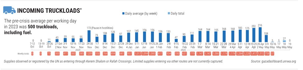 The UN’s own data below shows that 24,086 trucks of food & aid have entered Gaza since 10/7 or 105/day which is 30% more than ~80/day coming in pre-war (it was not 500, that's everything not just food per working day). How is this “intentional starvation”? 2/