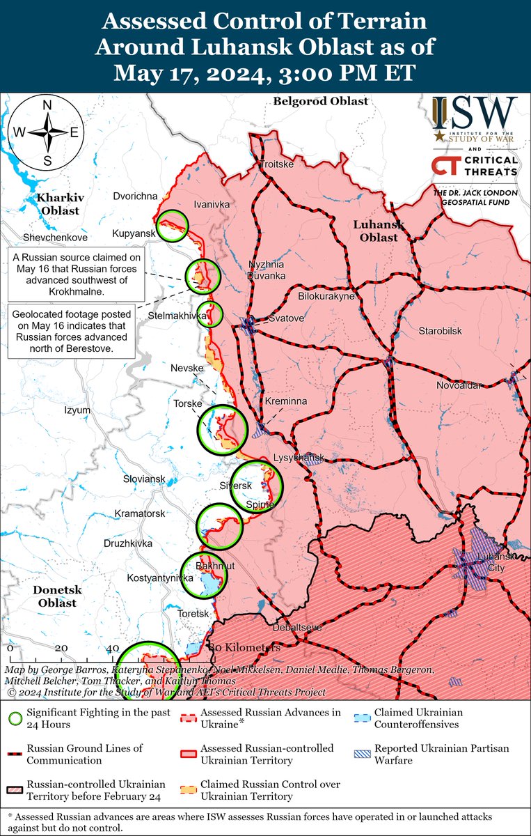 3/ Bakhmut: Russian forces continued assaults near Chasiv Yar on May 17 but did not make any confirmed advances.