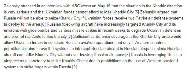 3/ Sufficient air defense coverage in the Kharkiv City area would allow Ukrainian forces to constrain Russian aviation operations, but only if Western countries permitted Ukraine to use the systems to intercept Russian aircraft in Russian airspace since Russian aircraft can strike Kharkiv City without ever leaving Russian airspace.