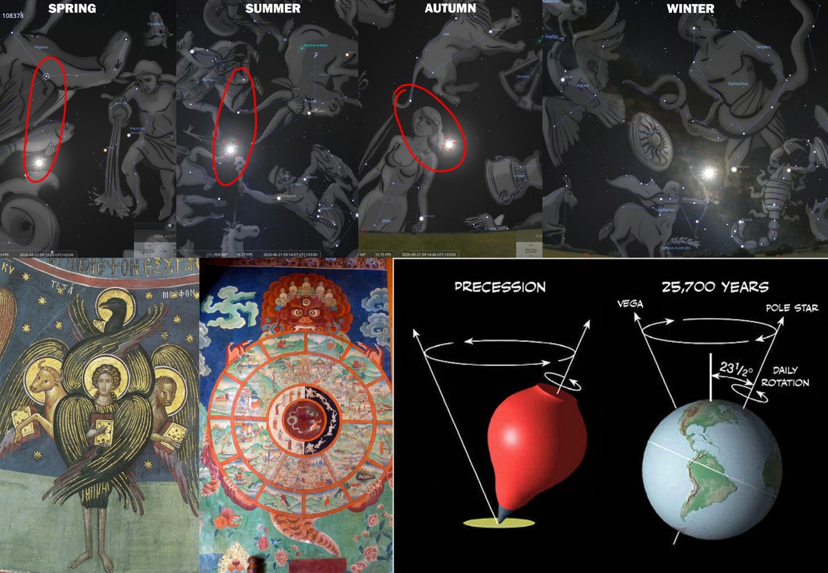 The spring equinox has already left Pisces, because it is now in the two-faced Nakshatra where the great divide happens and is associated with the star α Pegasi (Markab). Meanwhile, at the winter solstice the Sun is right at the hidden constellation of Ophiuchus, between the tail of Scorpio and the arrow of Sagittarius, which represents the final battle.