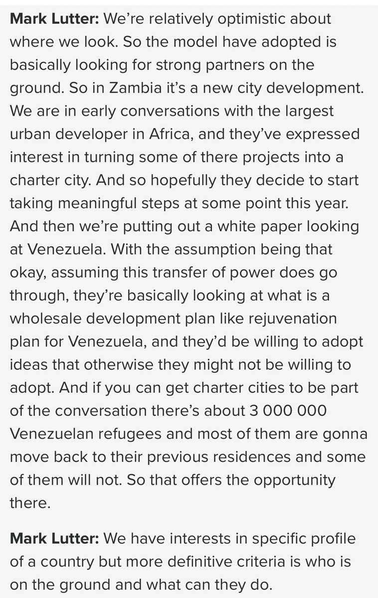 In 2019, Mark Lutter—whose nonprofit received $$$ from the Thiel-backed Emergent Ventures in 2018—said, “we’re putting out a white paper looking at Venezuela…assuming this transfer of power does go thru … And if you u can get charter cities to be part of the conversation,” there is “opportunity…” 1/