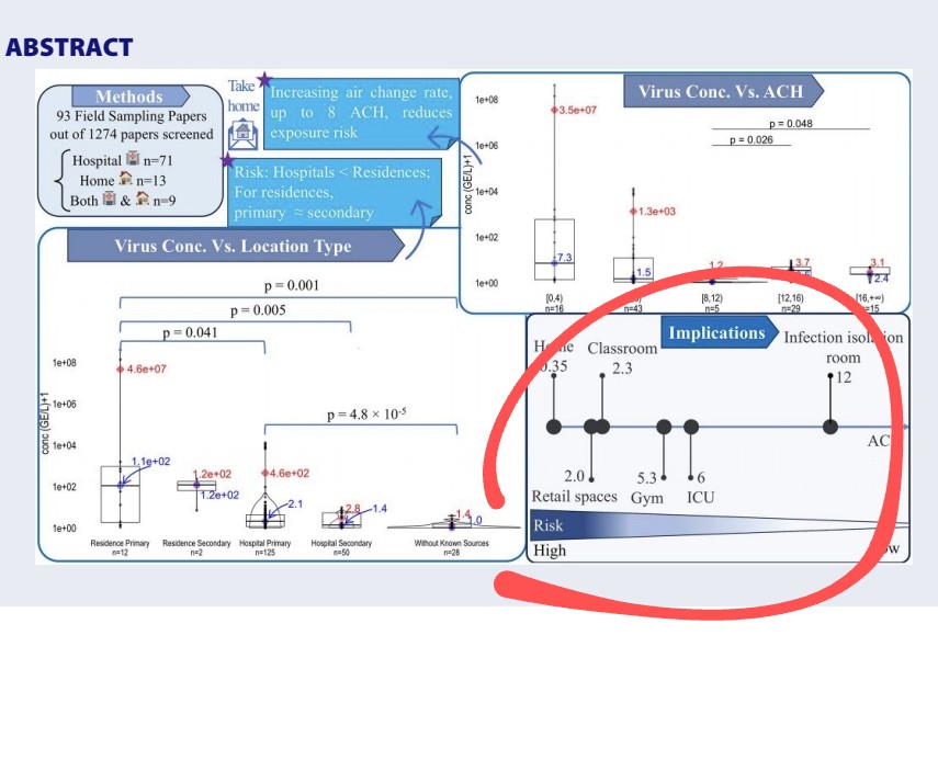 6) In conclusion, this analysis of diverse field studies provides evidence that increased ventilation through higher ACH can help reduce potential exposure to airborne SARS-CoV-2.