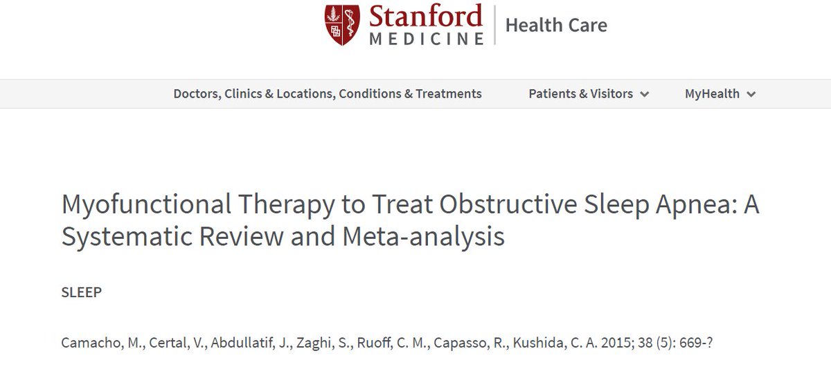• Stanford Medicine published a 'State of The Art' review finding Myofunctional Therapy effective in reducing sleep apnea and snoring.Image