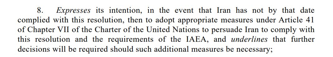 Wobec Iranu RB ONZ w trybie rozdziału VII KNZ wydała kilka rezolucji, ale żadna z nich nie upoważniała państw członkowskich do użycia siły. Wyraźnie zaznaczało to rezolucja RB ONZ 1696/2006, która podkreśliła, że do takich działań będzie potrzebna kolejna rezolucja RB ONZ./3