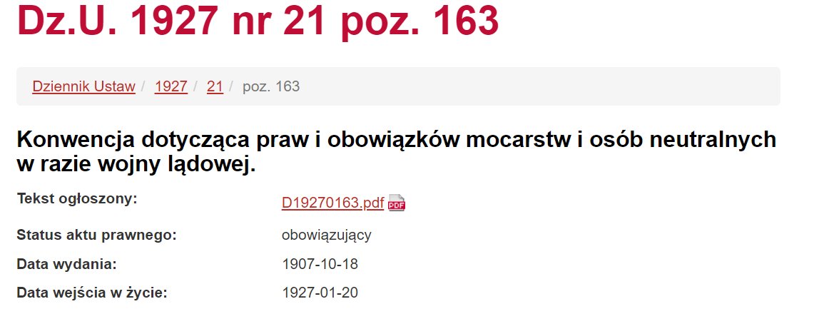 Zwróćmy uwagę, że na stronie Sejmu Konwencja V z 1907 roku o neutralności w wojnie lądowej jest wciąż traktowana jako obowiązująca. Tak zaczyna się jednak zmiana prawa - od naruszenia /3