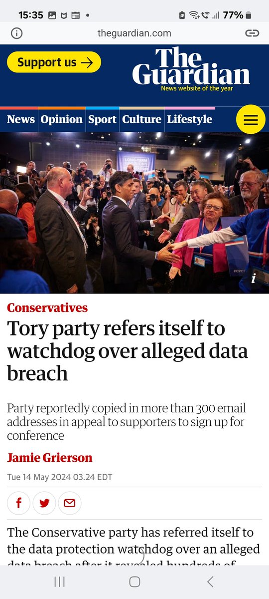 Conservative Party refers itself to watchdog after accidentally publishing email addresses in major data breach