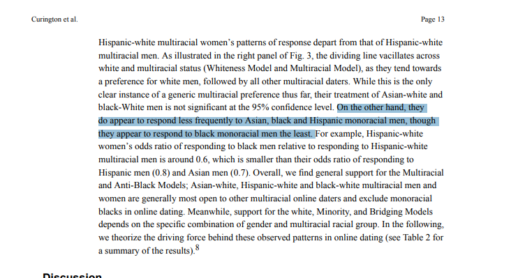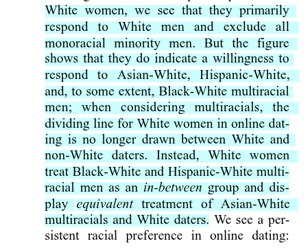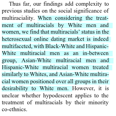 "White women primarily respond to White men, and exclude all monoracial minority men.