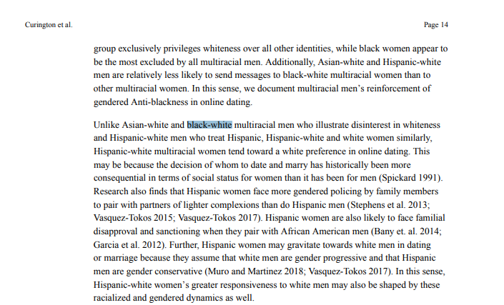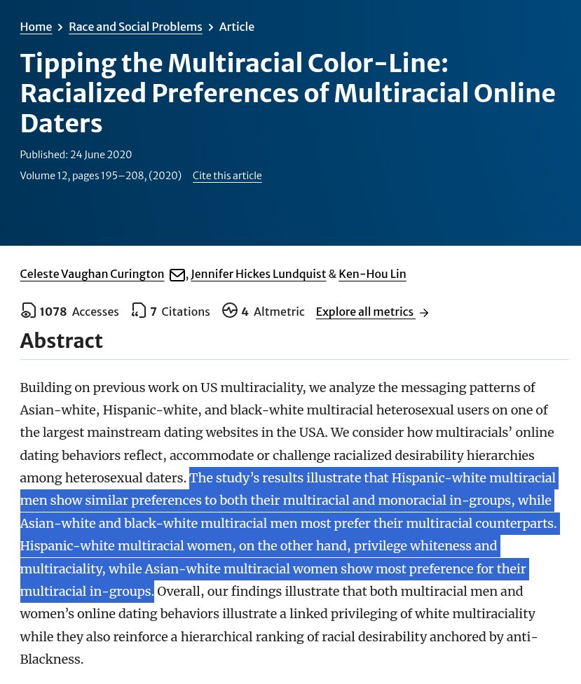 A 2020 study found that a racial hierarchy emerges for multiracial daters consistent with past research.