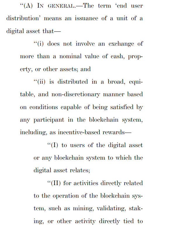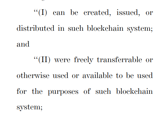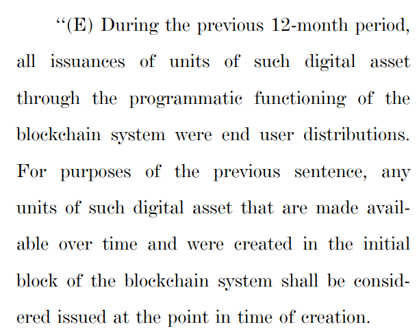 Token issuance in the last 12 months must be an end user distribution - government talk for an airdrop that: 1 is broadly distributed, 2 relates to the nature of the chain, or 3 is based on the holdings of another asset.