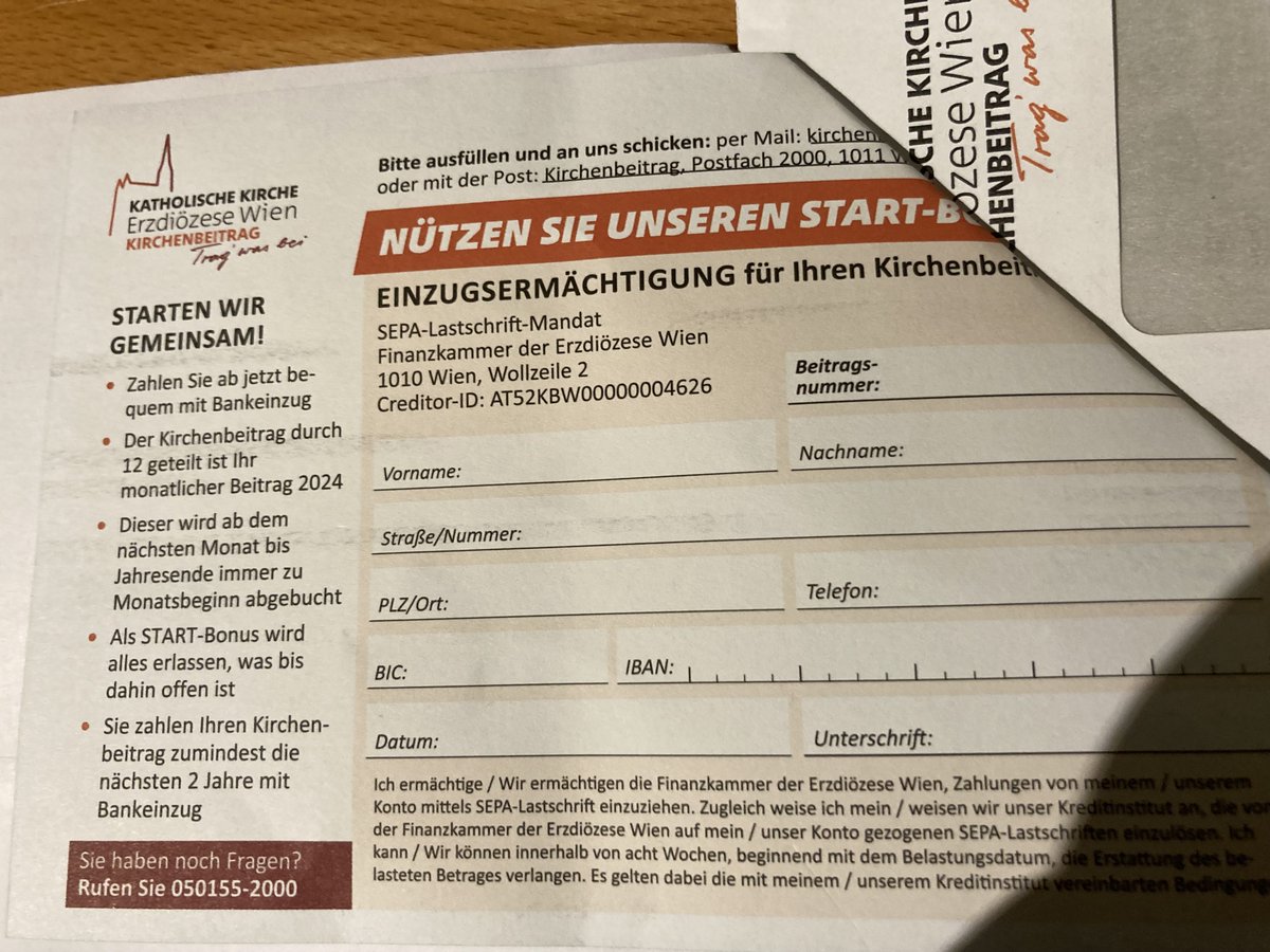 Hier noch die Rücksendekarte im Schreiben der Kirche. Sieht aus wie ein Lockangebot eines Stromversorgers.