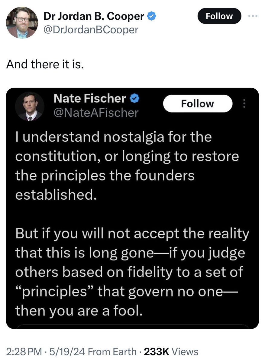 Nate Fischer is an alum of the Claremont Institute, an official partner of Project 2025. Here, he says the quiet part out loud. #StopProject2025 h/t @DrJordanBCooper 1/