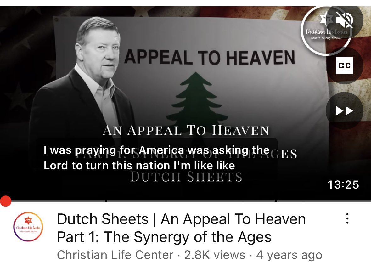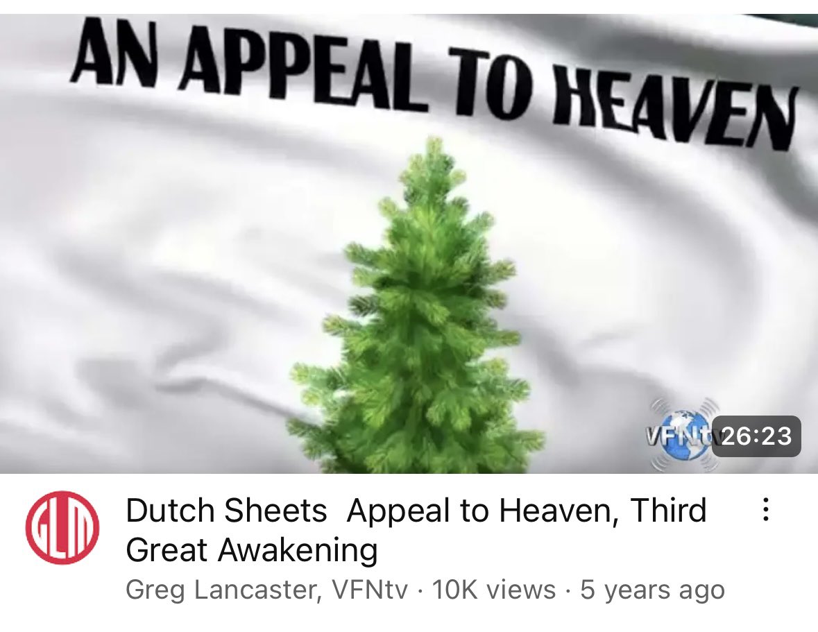 “Let’s talk about the Appeal to Heaven flag. Cuz a lot of you may know it from Dutch Sheets” who “had seen it in some visions and dreams that he had …” - Mercedes Sparks, assistant to New Apostolic Reformation (NAR) leader Lance Wallnau, 1/5/21 (Sheets is a NAR leader too.) 1/
