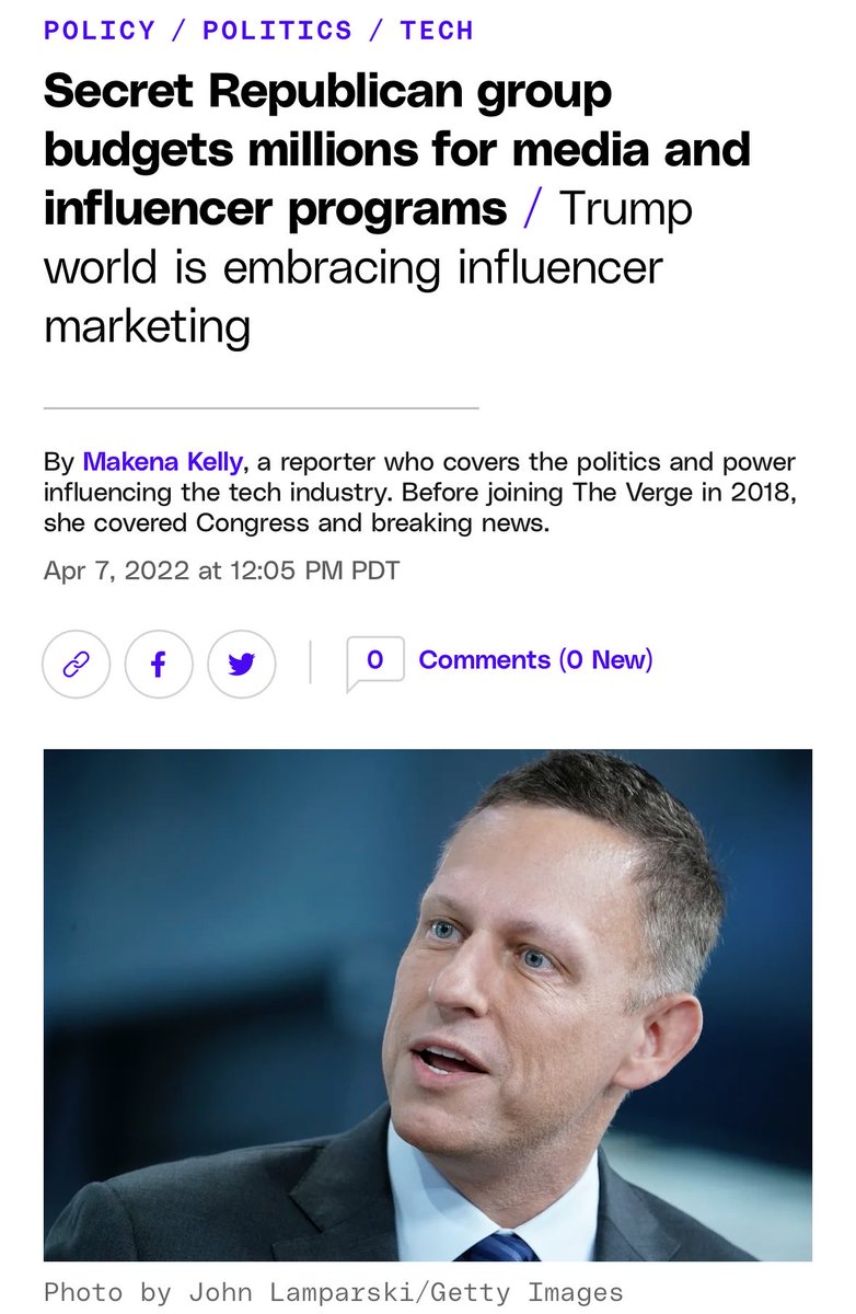 The Rockbridge Network is a “new group” of wealthy far right activists “planning to revamp the American right by investing … into new … MEDIA VENTURES, including ‘INFLUENCER PROGRAMS…’” Rockbridge features … [far right] billionaires like Peter Thiel & Rebekah Mercer.” 1/ 4/7/22 theverge.com/2022/4/7/23015…