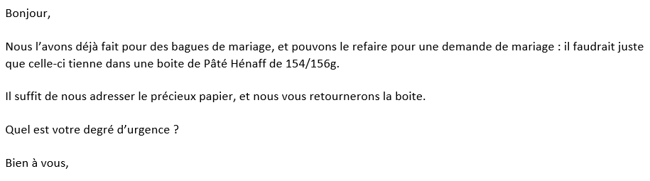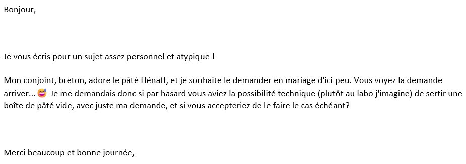Vous vous souvenez de cette demande en mariage glissée dans une boite de Pâté Hénaff ?