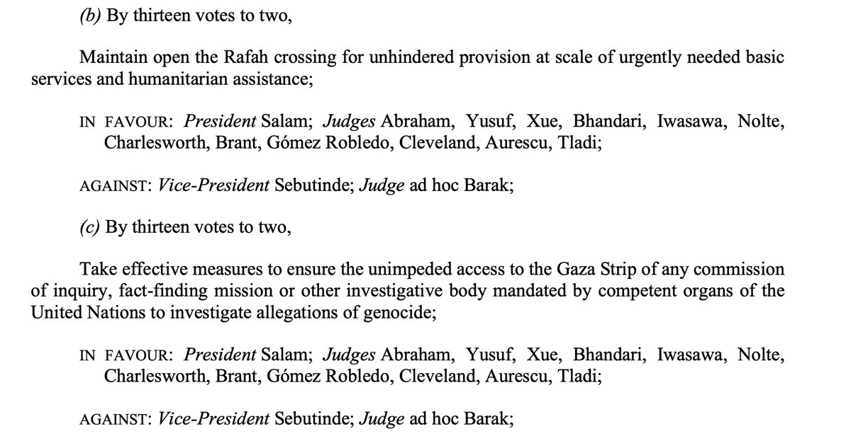 The rest of the 2a order, as we shall see, created some discussion amongst the judges. But Israel's apologists, Sebutinde and Barak, do not even recognise the risk of genocide, so their mis-intereptations are irrelevant and less interesting.