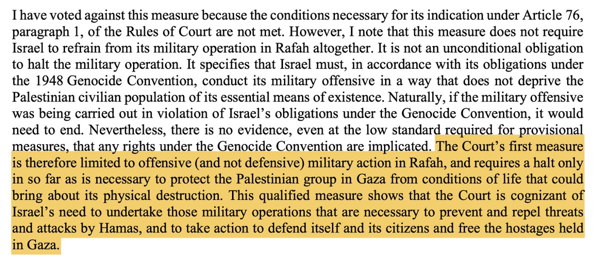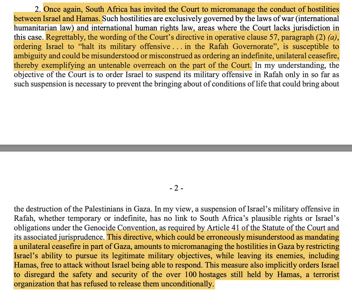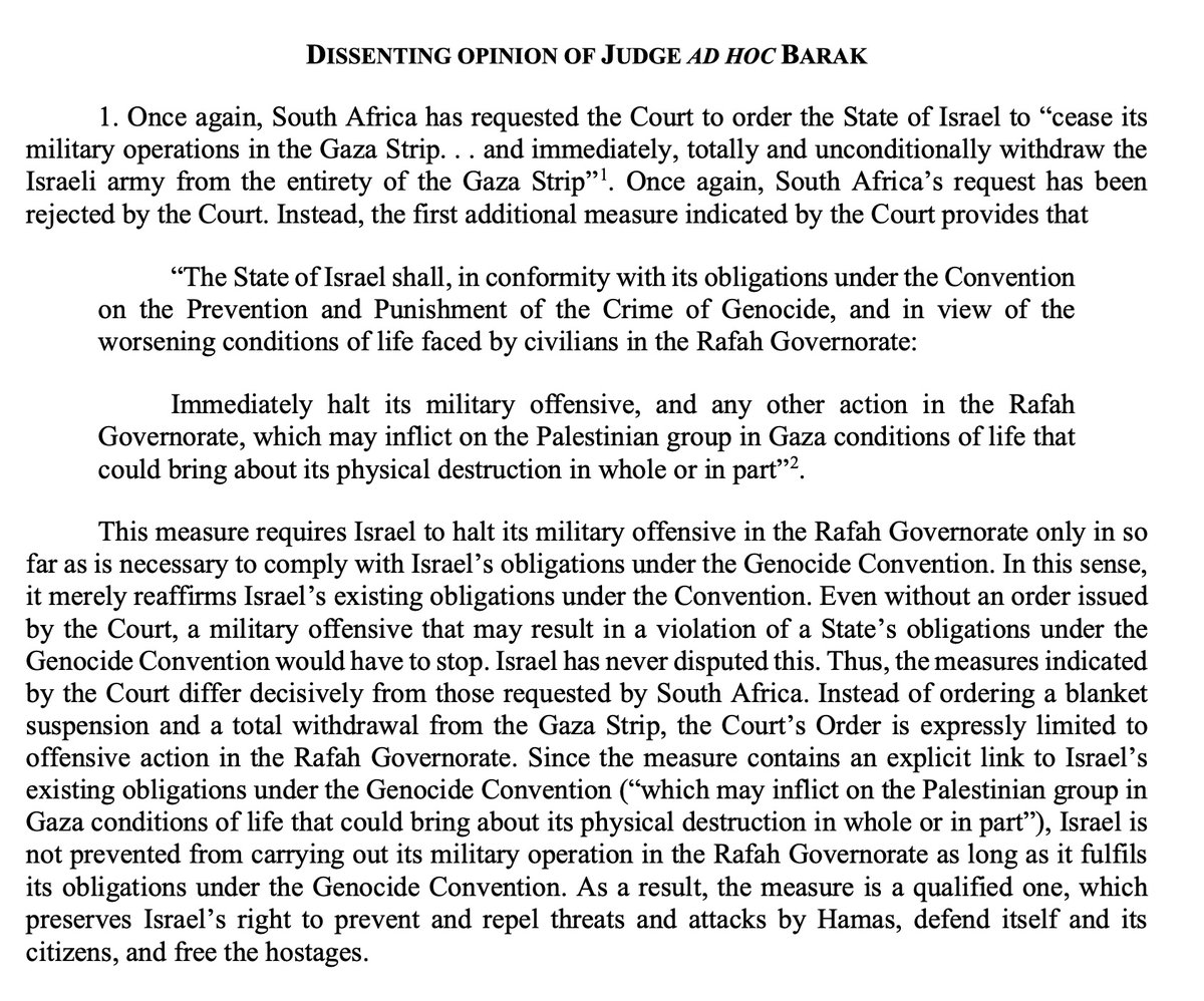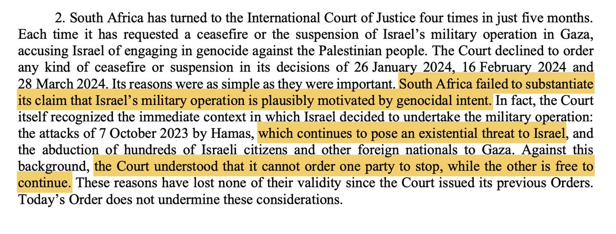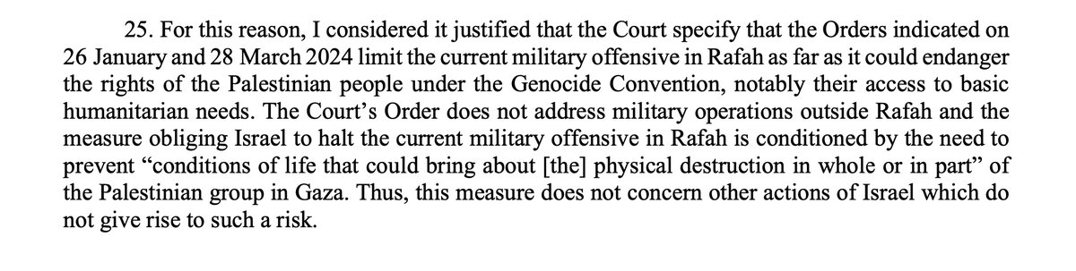 The words specific and explicit here are key. On 7 April Israel's ICJ legal defence team told Israeli media that they were worried the ICJ will order a cessation of the fighting because only 2 judicial votes in March prevented that order in late March. israelhayom.co.il/news/geopoliti…