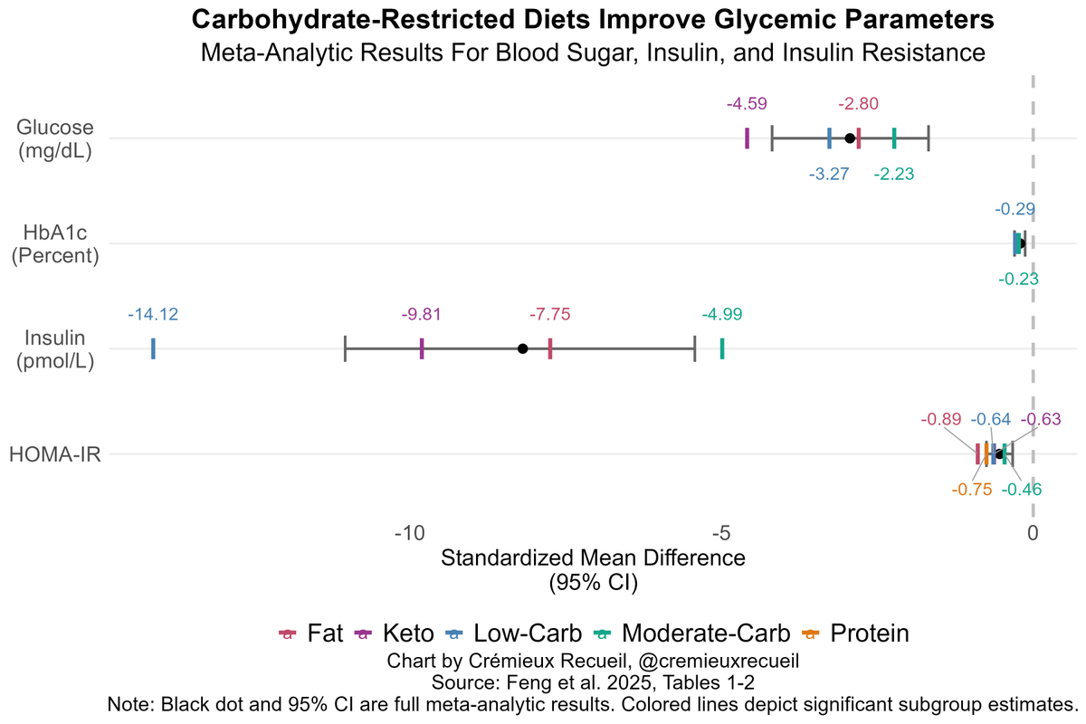 Diets that restrict carbohydrate consumption lead to improved blood sugar and insulin levels, as well as reduced insulin resistance.