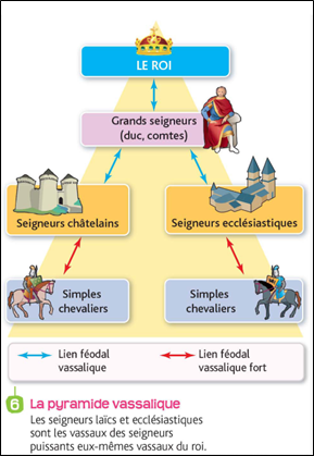 La féodalité, c’est un système pyramidal, pensé pour que le roi en soit au sommet. Viennent ensuite les grands seigneurs (ducs, comtes), les plus petits seigneurs. En descendant la pyramide, on tombe sur des petits châtelains, propriétaires d’un petit donjon.