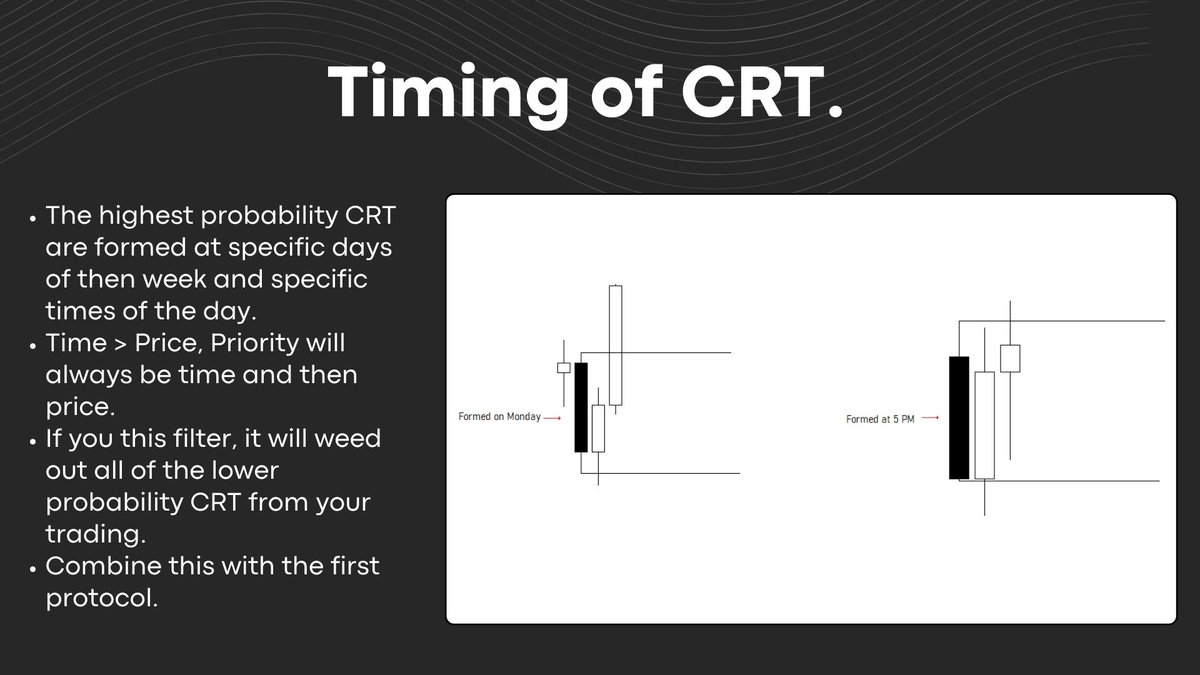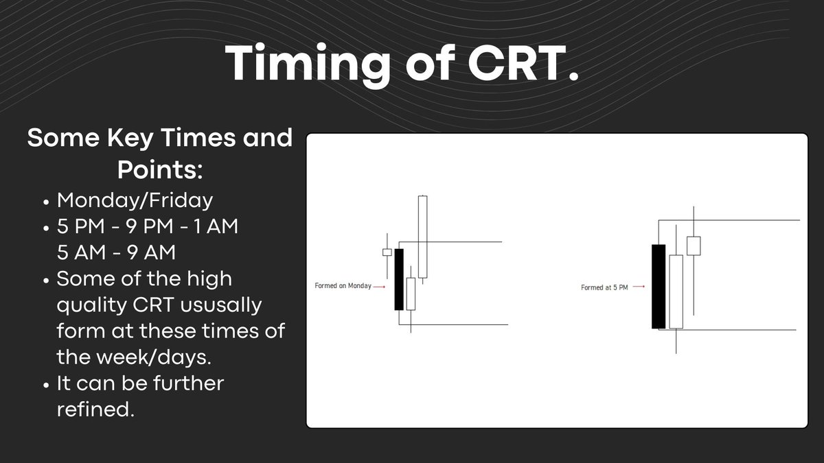 One of the most important aspects you should consider when selecting CRT is the timing of their formation. It's crucial to not just focus on random CRTs formed at random times. There are key times that you should use to find the most accurate CRT.