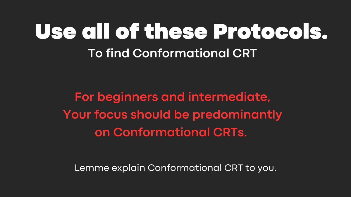 I understand that most of you are either beginners, intermediate, or semi-advanced students. That's why your focus should be on this Conformation CRT rather than the other one.