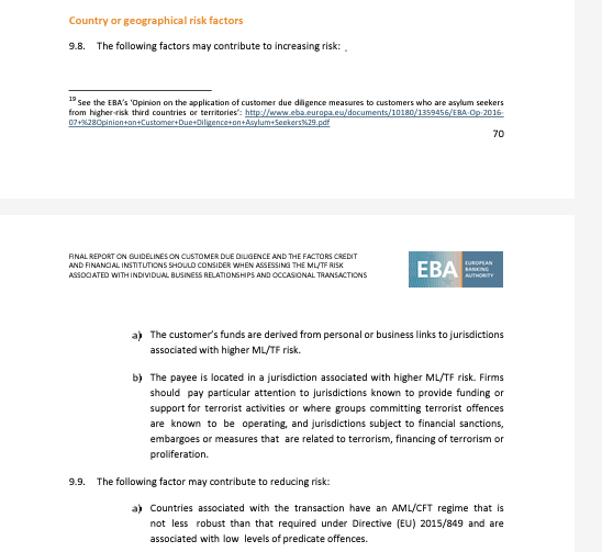 Banken moeten goed kijken: welk risico er aan een klant aan kleeft en lees goed. Customers funds are derived from personal or business links met hoog risico landen.