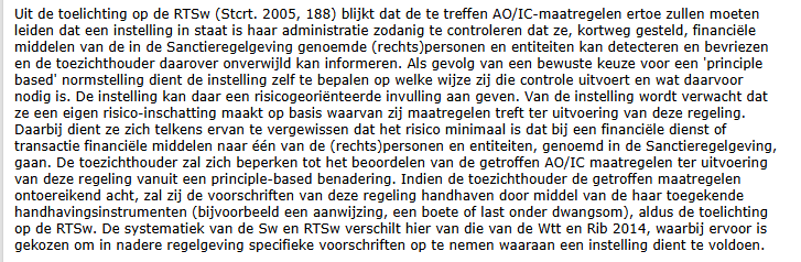 Verstopt in een complexe bak algoritmes en monitoringsopdrachten die nodig zijn vanwege 1- zorgplicht (fraude voorkomen) 2- witwassen vermijden (hoog risico landen analyse) 3- sanctiewet (namen op sanctielijst ja of nee).