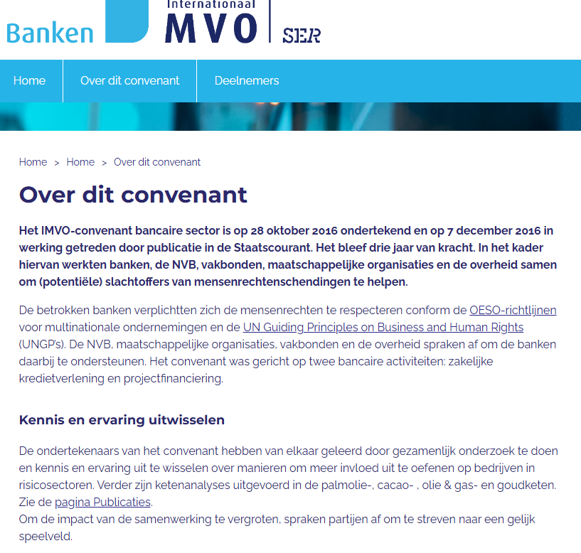 Ah, nog een nabrander. Nu we het toch over banken en mensenrechten hebben. Wist u dat de banken tot 2020 de mensenrechten wél onderschreven hebben, maar toen collectief hun handtekening weer weghaalden onder het convenant van die strekking?