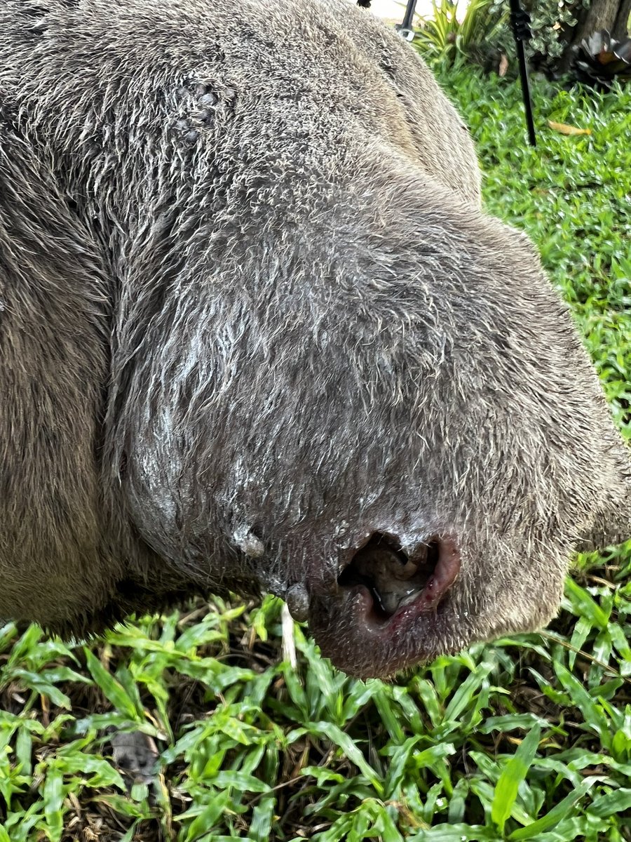 Joy lives less than a mile from where we are based in the jungle. A friend spotted her on the way in. Her wound was bad and we think caused by either barbed wire or a dog bite.
