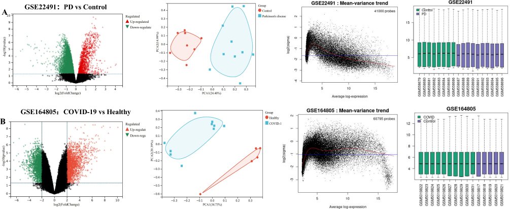3) Analysis of gene expression data identified differentially expressed genes (DEGs) between PD/COVID-19 and controls. Pathway analysis showed genes were involved in processes like inflammation and immune response.