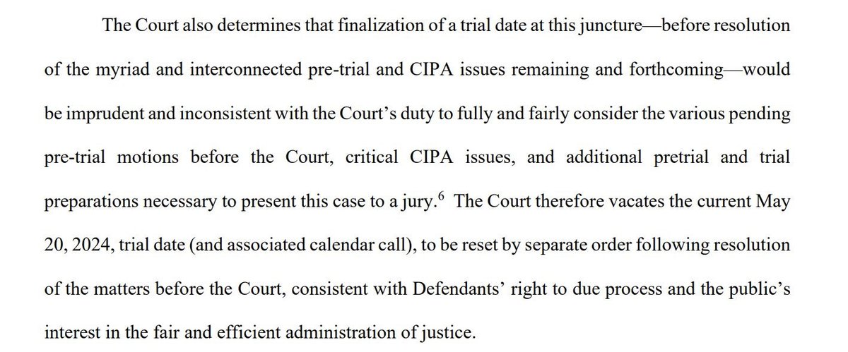 2/Last week Judge Cannon canceled the May 20 trial date & refused to set a new one. Jack Smith had asked for a July date, but she wrote it would be “imprudent and inconsistent” with her duty.