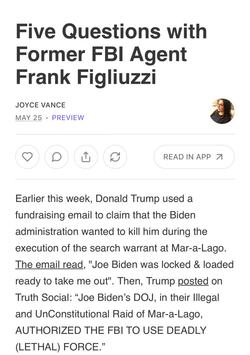 3/Former FBI Agent & head of the counterintelligence division Fran Figliuzzi & I had a chat about this earlier tonight, discussing the deadly force policy is a party of every FBI Ops plan. open.substack.com/pub/joycevance…