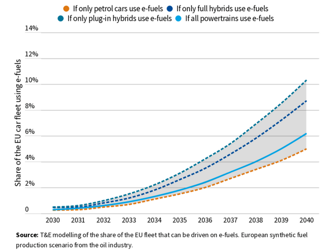 Im Jahr 2035 könnten nur 2 Prozent der EU-Auto-Flotte mit E-Fuels versorgt werden. Das zeigen Daten der Öl-Industrie (!).