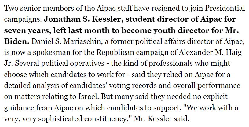 Kessler would leave AIPAC to join Joe Biden's 1988 presidential campaign as his youth director.