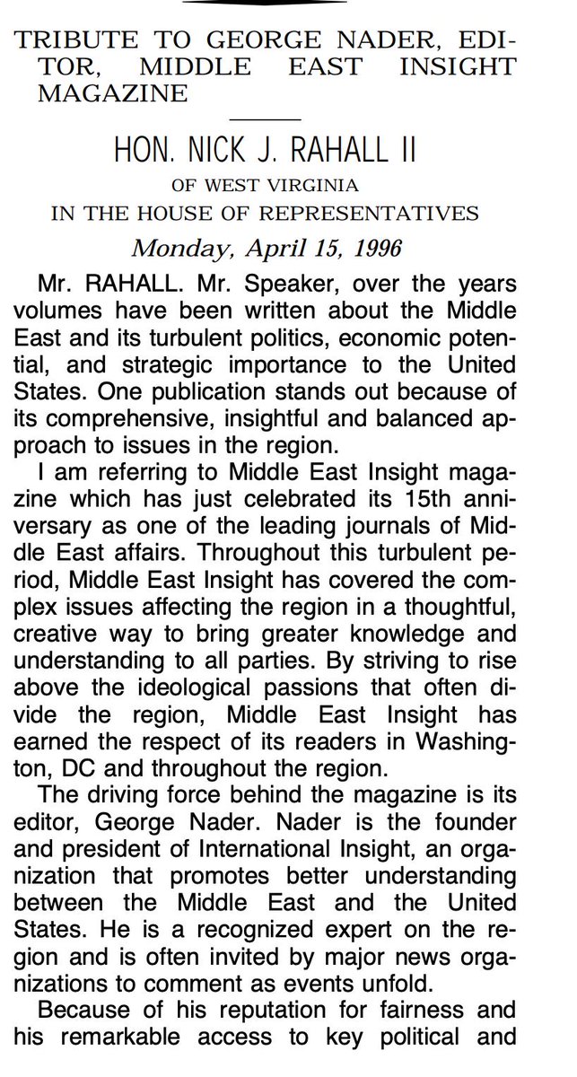 Despite his felony conviction to start the decade, the 90's prove to be a heady time for Nader. He appeared 9 times on C-SPAN speaking at various forums hosted by Middle East Insight. c-span.org/search/?search…