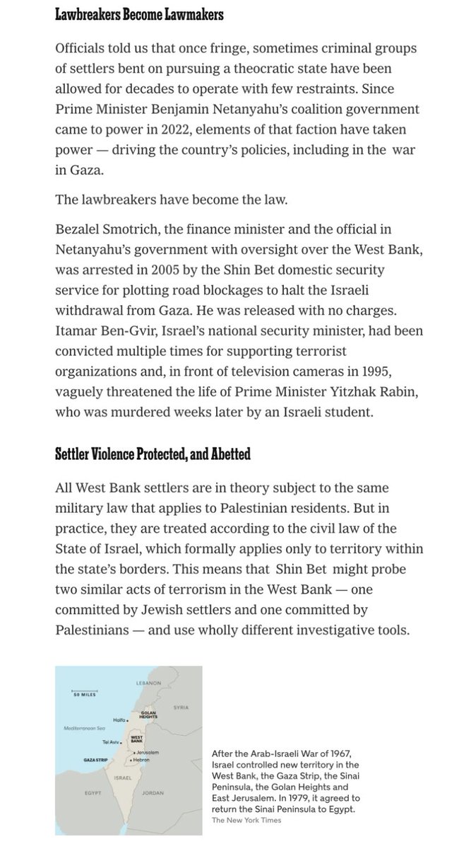 L’enquête révèle comment des groupes extrémistes terroristes messianiques de la frange la + violente des colons juifs, longtemps marginaux et criminels, sont désormais au pouvoir, basée sur une centaine d’entretiens avec des anciens et actuels responsables politiques 🇮🇱.
