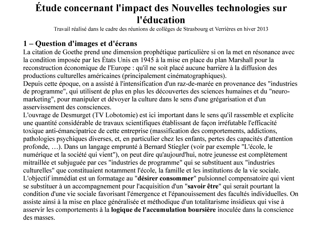 Bon, tout d'abord, ça commence par une citation de Goethe. Ça donne le ton de la réflexion de ce doc pour moi: écran = aliénation de l'esprit, asservissement de l'individu. 👇