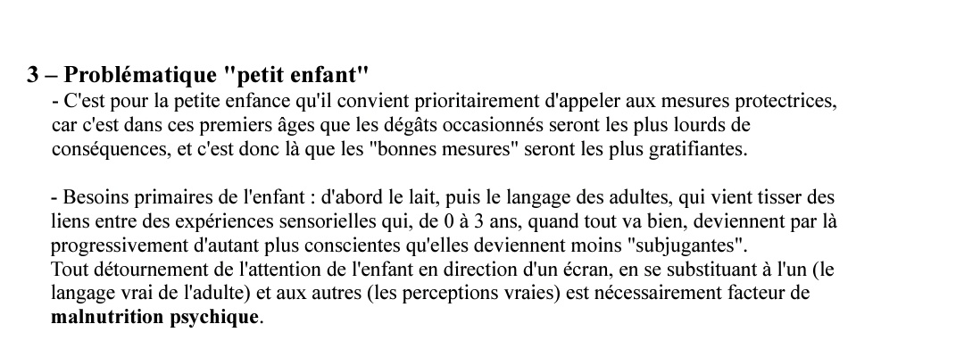 Si effectivement l'usage d'écrans chez des enfants de moins de 3 ans peut poser question, je me questionne sur cette notion de "malnutrition psychique".
