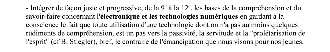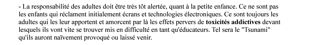 Sinon, oui il faut transmettre les bases d'utilisation du numérique mais à partir de la 4ème (9ème classe), c'est plutôt tardif non ? Si l'usage du numérique mal maîtrisé peut mener à l'asservissement de l'individu alors que la plupart des autres enfants 👇