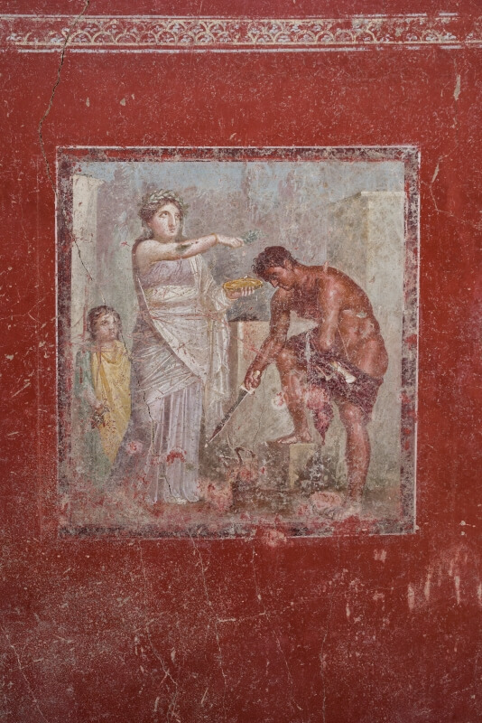 Las excavaciones en la Regio IX Insula 10.1 nos traen otro bellísimo lugar: un santuario o sacrarium, con paredes pintadas de azul y destinado a rituales y conservación de objetos sagrados 🧵👇
