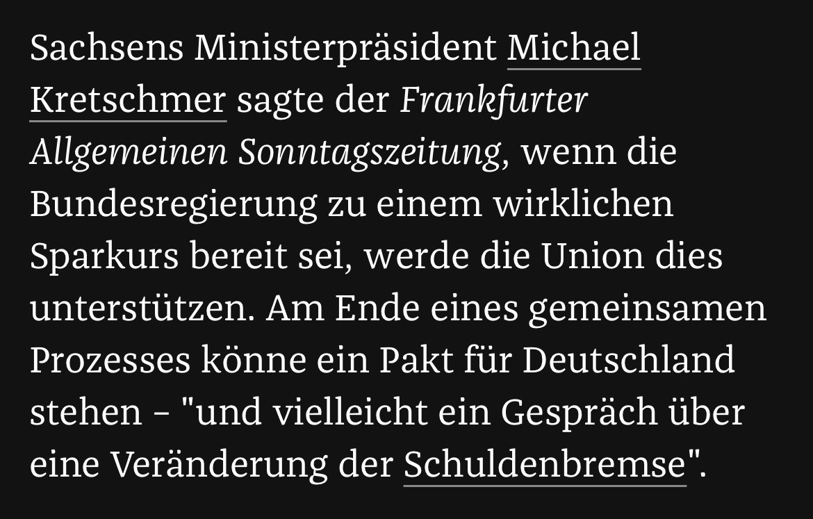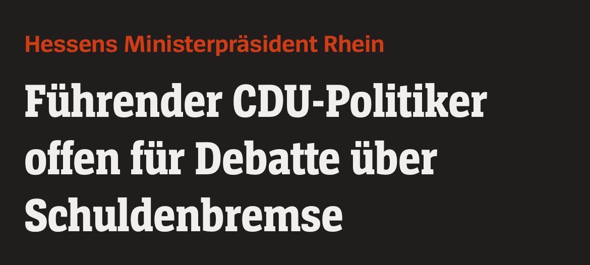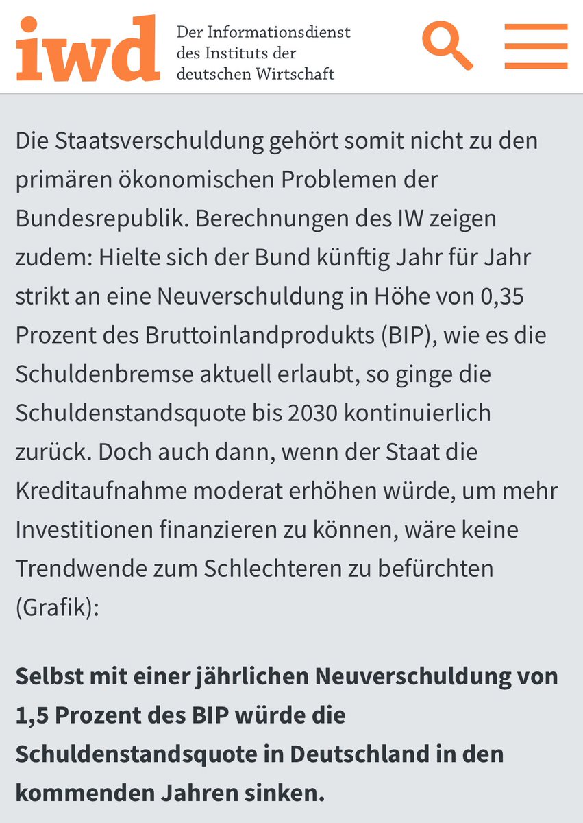 in der Lage sein, die Schuldenbremse, so wie sie derzeit formuliert ist, einzuhalten. Es sei denn, man ist zu radikalen Kürzungen bereit (was die Union nie war). Oder will, dass Deutschland keine Grundstoffindustrie mehr hat (was die Union nicht will). 3/4