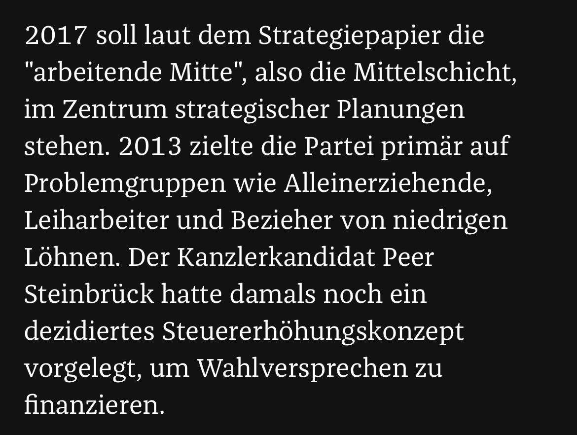 Ein paar Monate später, ein neues Strategiepapier: jetzt soll wirklich die „arbeitende Mitte“ in den Blick genommen werden. /3