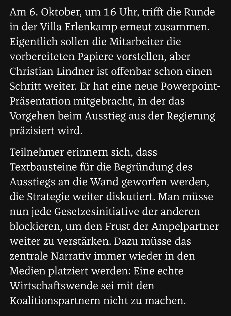 Bereits am 29. September werden unterschiedliche Szenarien diskutiert. In der Aussprache allerdings soll rasch klar geworden sein, in welche Richtung Lindner gehen will /2