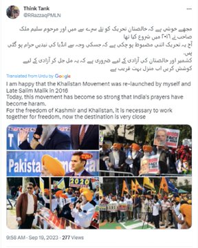 5/n In a tweet, Raja Razzaq boasts of relaunching the #Khalistan movement in 2016, proudly claiming its significant growth since then.