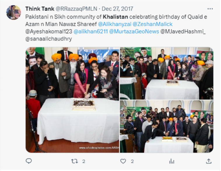 6/n He can be seen celebrating the birthdays of Pak founder Mohammad Ali Jinnah and former PM Nawaz Sharif along with Amarjeet Singh- founder of Khalistani TV channel- @tv84channel
