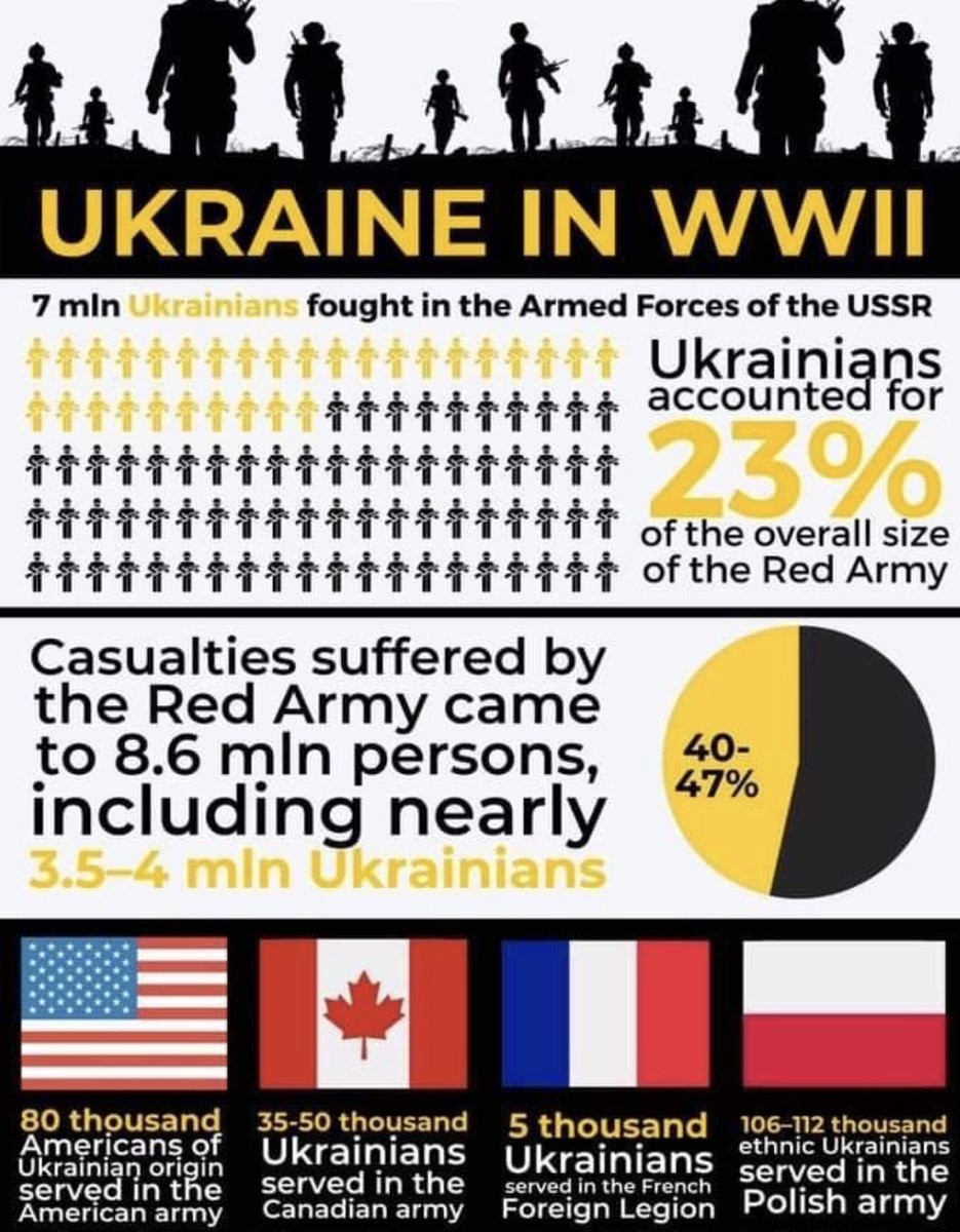 🇨🇦🇺🇦 Bref : OUI, des soldats d'origine Ukrainienne étaient présents au Débarquement le 6 Juin. Ils étaient AUSSI MASSIVEMENT présents sur le Front Est, où 7 millions d'Ukrainiens ont combattu les nazis dans l'Armée Rouge ou avec les Partisans, et 3.5 millions sont morts.