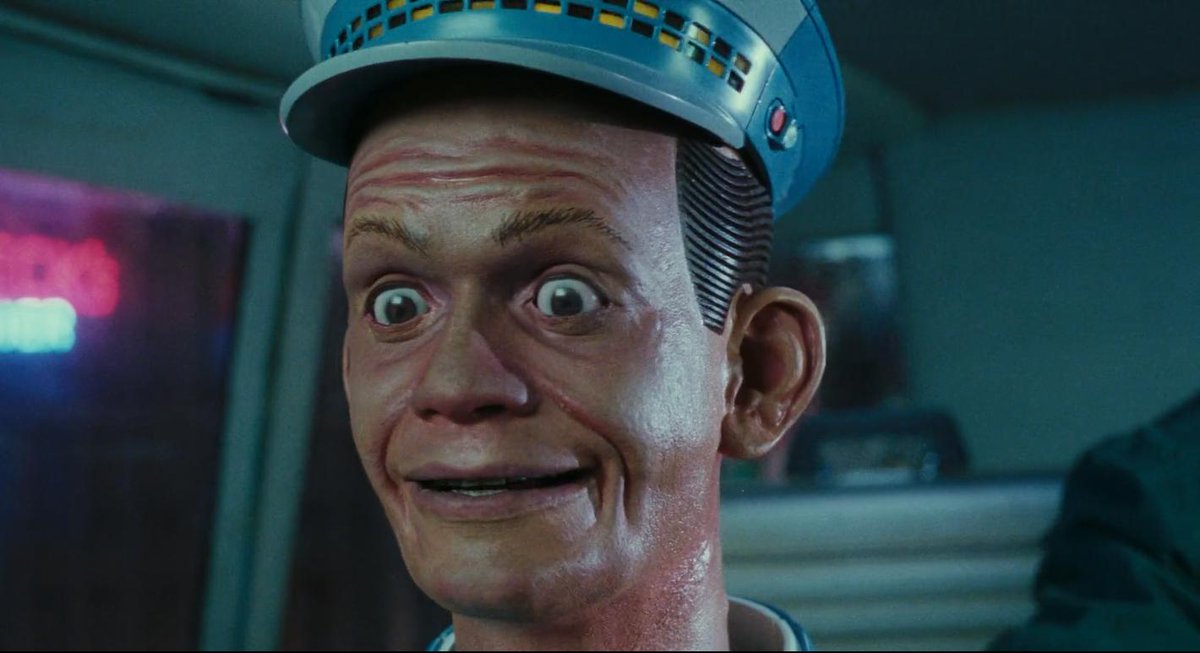 Johnny Cab was voiced by Robert Picardo, and he was also the model for Johnny’s face. Rob Bottin had a mould of Picardo’s face from 1985 fantasy film Explorers, so was able to recycle that.