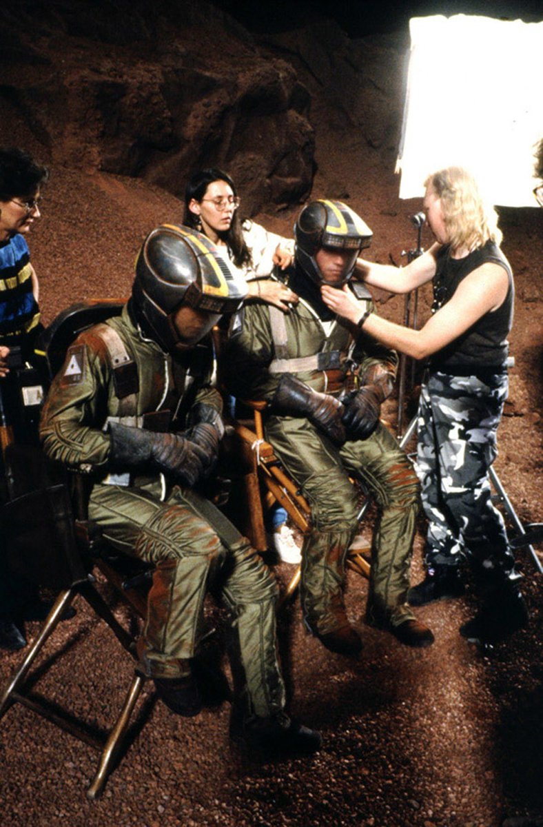 A trip to Mars was to be filmed and effects supervisor Eric Brevig created a miniature ship. But, because of budget limits, it was cut and Verhoeven came up with the “Get your ass to Mars” transition. Brevig’s team also built a huge miniature of the Martian landscape.