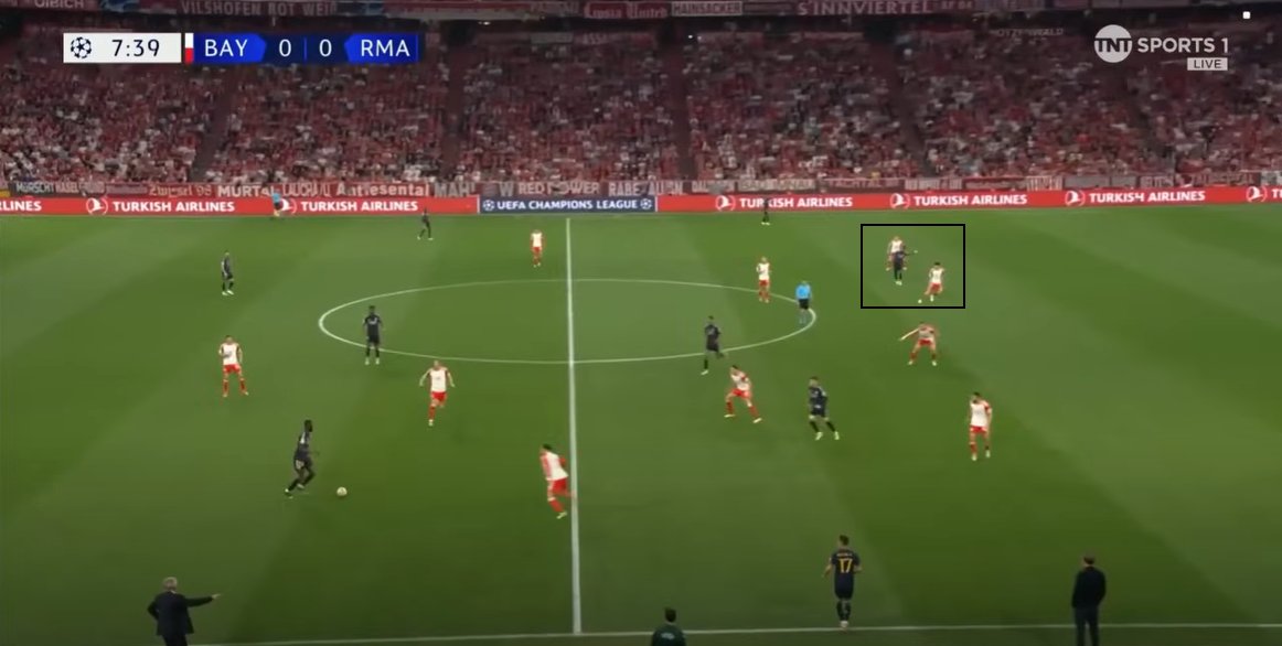 Den Bayern ist dies in den Spielen gg Real bspw. sehr gut gelungen, sodass Vinicius Jr. & Rodrygo nicht in die favorisierten Aktionen gekommen sind. ->